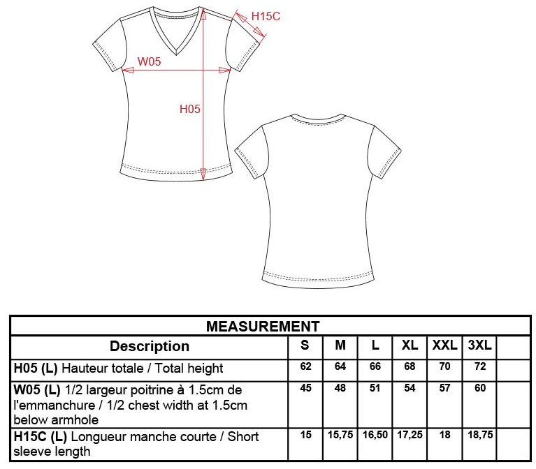 Taillierter Schnitt, schmal eingefasster tiefer V-Ausschnitt, Nackenband in Kontrastfarbe bei farbigen und weiss bei weissen Shirts, Doppelnähte, 40° waschbar, trocknergeeignet bei niedriger Temperatur, nicht chemisch reinigen