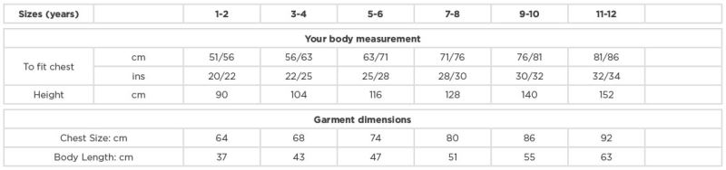 | Chest To Fit (ins) | 20-22 | 22-25 | 25-28 | 28-30 | 30-32 | 32-34 |