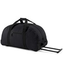 Einziehbarer Zwei-Rohr-Griff mit Verriegelungssystem, Tragegriff gepolstert, verstell- und abnehmbarer Schultergurt, robuste Rollen, Reissverschlusstasche seitlich, Hauptfach mit abschliessbarem Reissverschluss, Fassungsvermögen: 96l, Masse: 75x38x35cm, mit einem Schwamm reinigen, nicht waschen.