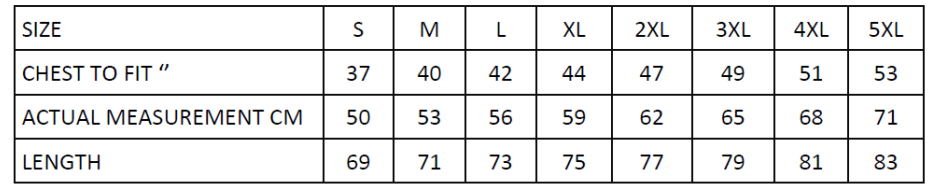 | S | M | L | XL | 2XL | 3XL | 4XL | 5XL | |