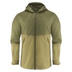 Zweifarbige Shell Jacke mit geklebten Nähten.Wasserdichter Reissverschluss und abgedeckte Seitentaschen mit Reissverschluss. Ärmel mit verstellbarem Klettverschluss. Mesh Innenfutter mit linker Innentasche und Veredelungsreissverschluss. Reflektierendes Detail am Rücken. Kapuze und Saum sind mit elastischen Kordeln verstellbar.