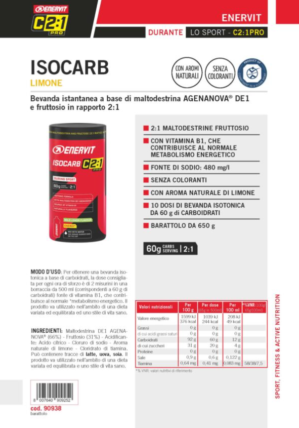 Enervit ENERVIT C2:1 Isocarb Mild Lemon, 650 g 90938