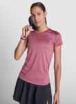 Damen Funktions-T-Shirt mit kurzen Ärmeln. Leichter Stoff aus recyceltem Polyester. · Kragen mit gekreuzten Details und Abdecknähten.