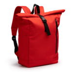 Rucksack aus RPET-Polyester. Geräumiges Hauptfach mit ausziehbarer Öffnung. Reißverschluss-Außentasche und zwei Seitentaschen. Gepolsterte Schultergurte und Rückenteil